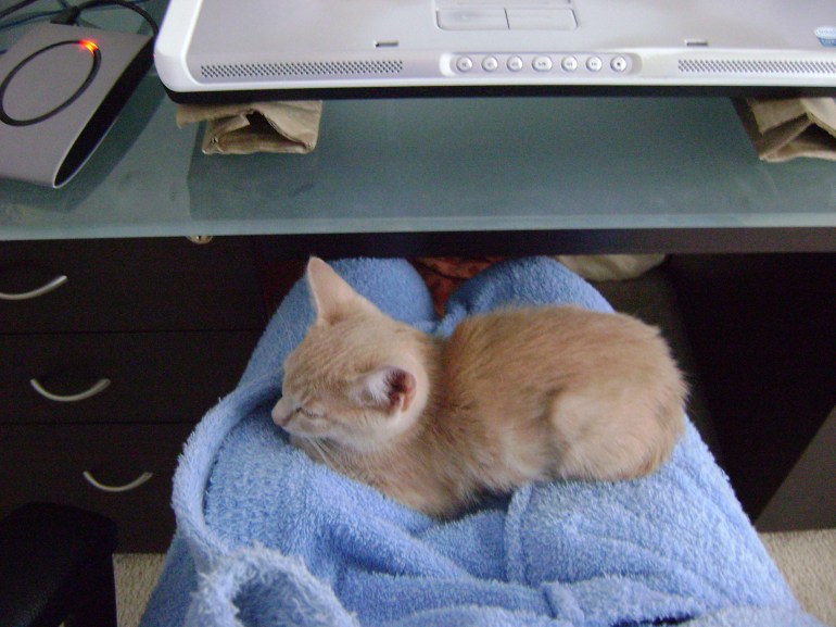 Lolita was the first pet in my life that belonged only to me. She wasn’t the family pet; she was my pet, and mine alone. She was the offspring of Arena, the cat I had grown attached to but had to leave behind when I moved out of state, and missed terribly. So, she was extra special for that. And my mom chose the runt in Arena’s litter for me to adopt because that little one would lie in the sun even when it was really hot already. I love heat, and my mom said that this particular kitten was meant for me. As soon as that kitten was old enough to board a plane, my mom flew from California to D.C. to bring her to me. I named her “Lolita,” which means “little Lola” in Spanish, reflecting both her irregularly small size and her roots in Southern California.