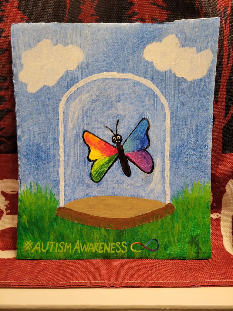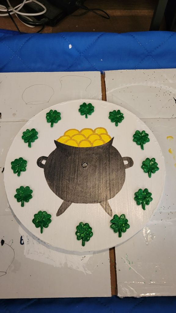 All paintings were done by me with acrylic paint on cardboard or unfinished wood.
