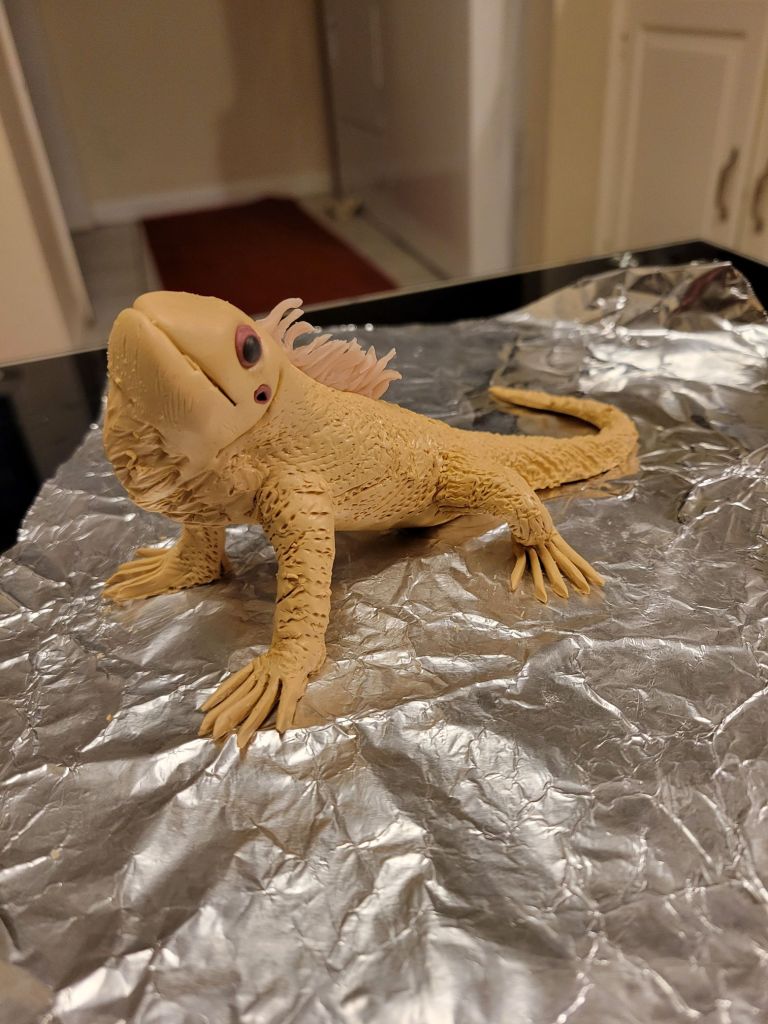 All sculptures were made by me with oven-bake polymer clay and sealed in a gloss or matte varnish. In some cases, I mounted them on my own acrylic-on-cardboard/unfinished wood paintings.