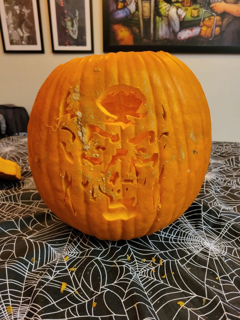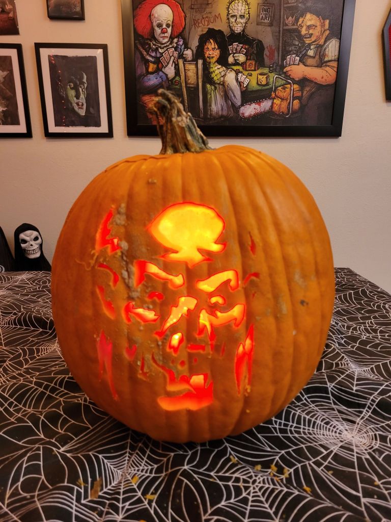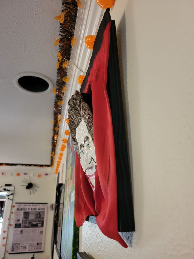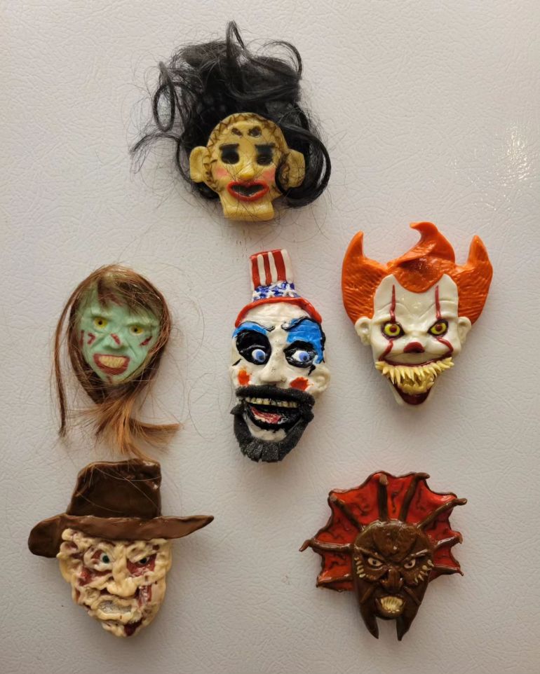 From left, down are: Leatherface (“The Texas Chain Saw Massacre,” 1974); Regan/Pazzuzu (“The Exorcist,” 1973), Captain Spaulding (“House of 1000 Corpses,” 2003), Pennywise (“It,” 2017), Freddy Krueger (“A Nightmare on Elm Street,” 1984) and The Creeper (“Jeepers Creepers,” 2001)