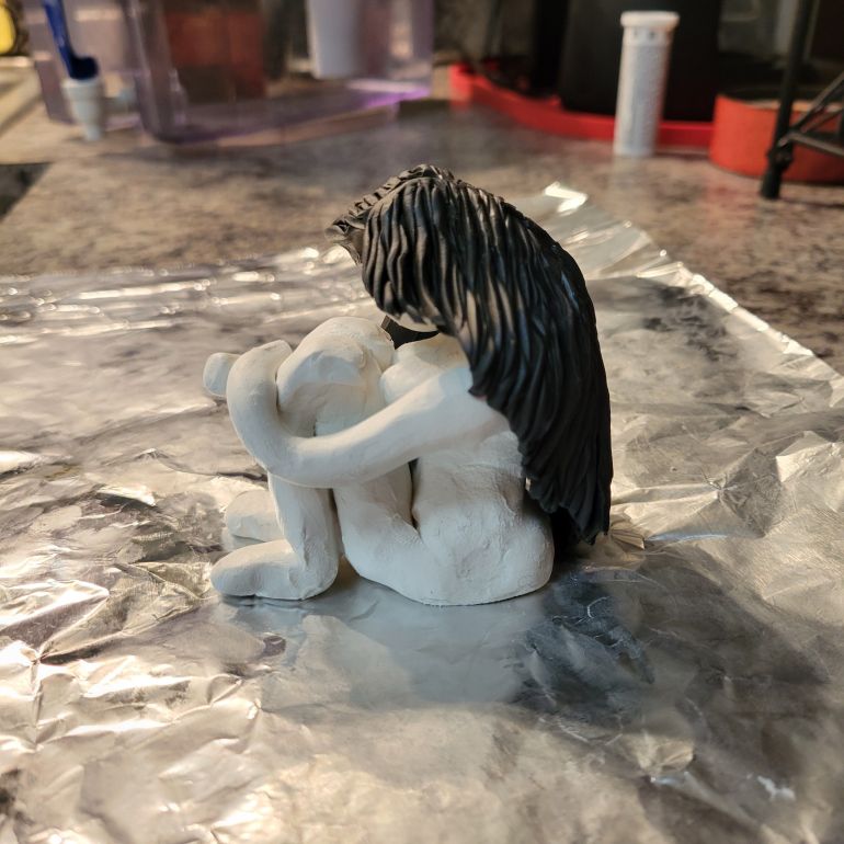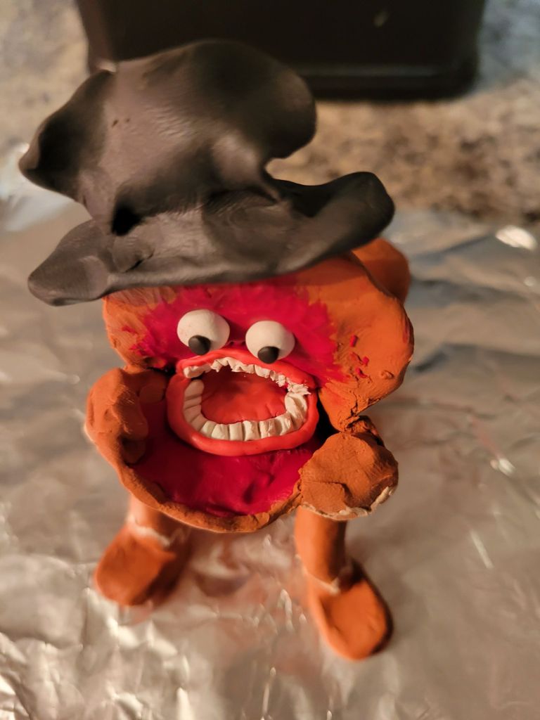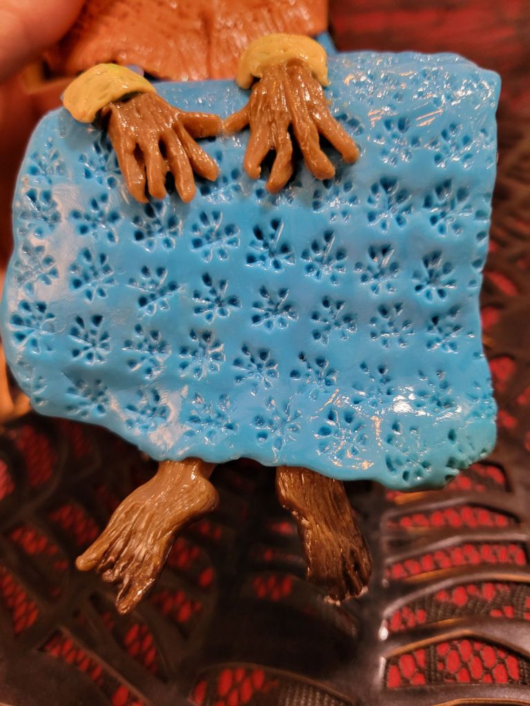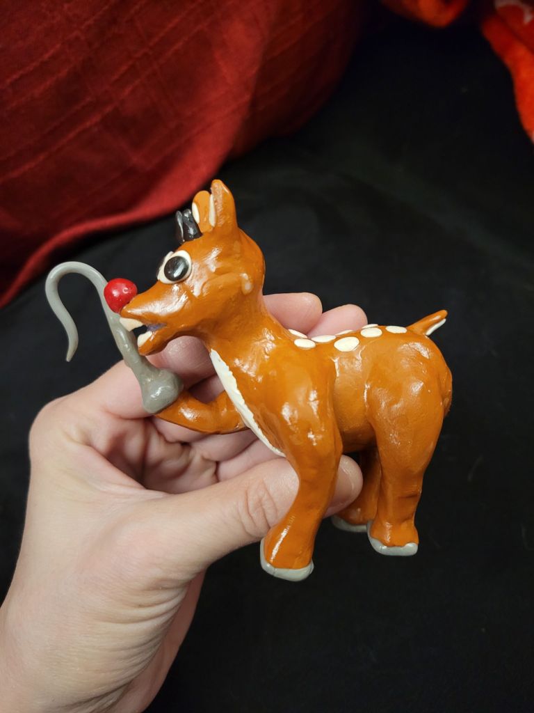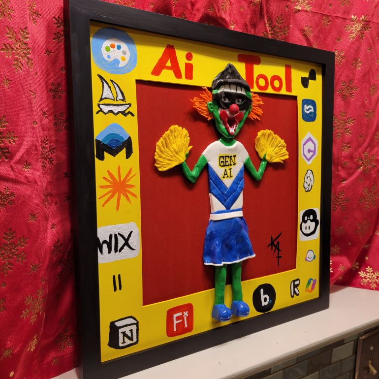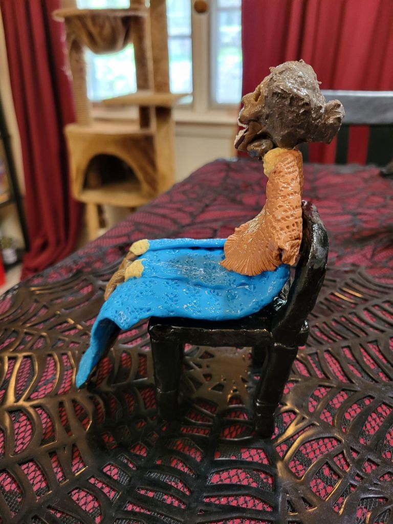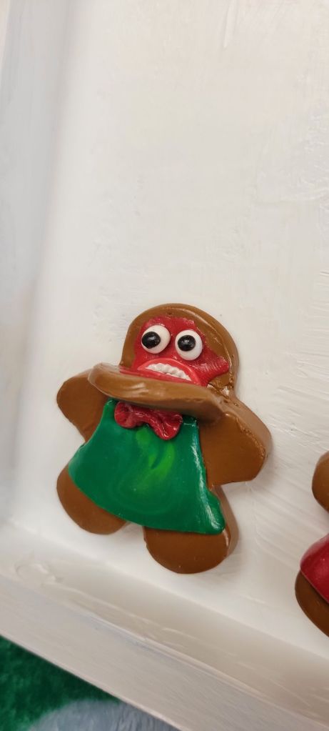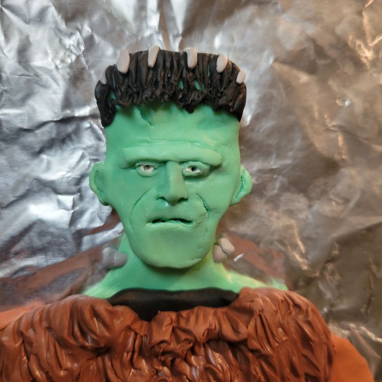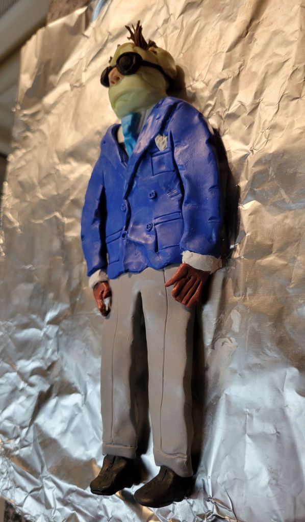 All sculptures were made by me with oven-bake polymer clay and sealed in a gloss or matte varnish. In some cases, I mounted them on my own acrylic-on-cardboard/unfinished wood paintings.