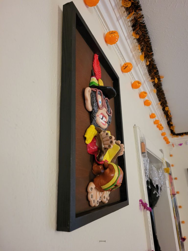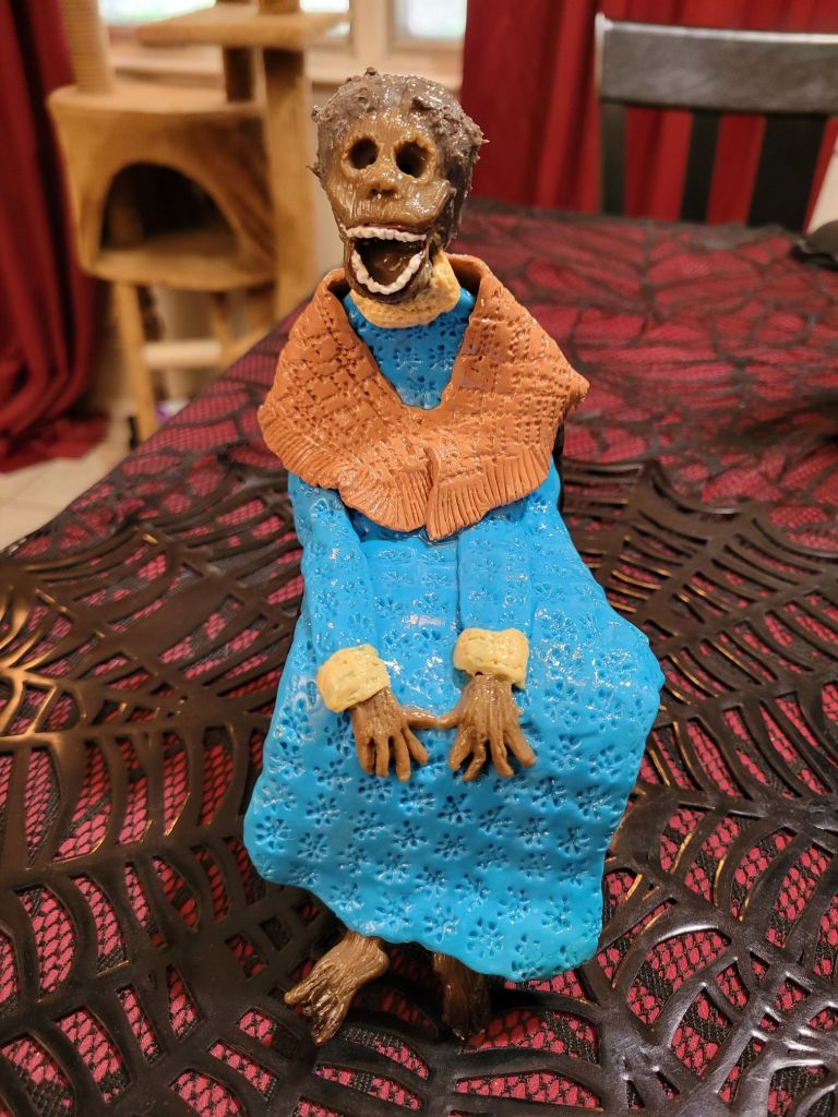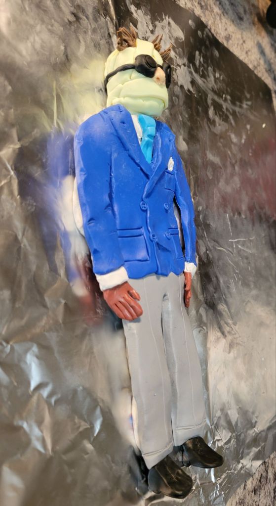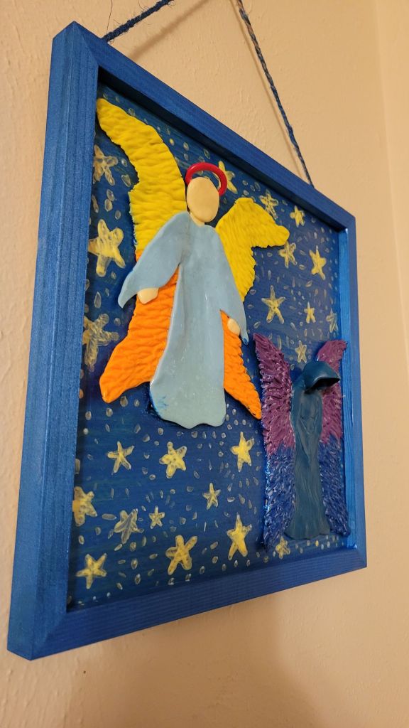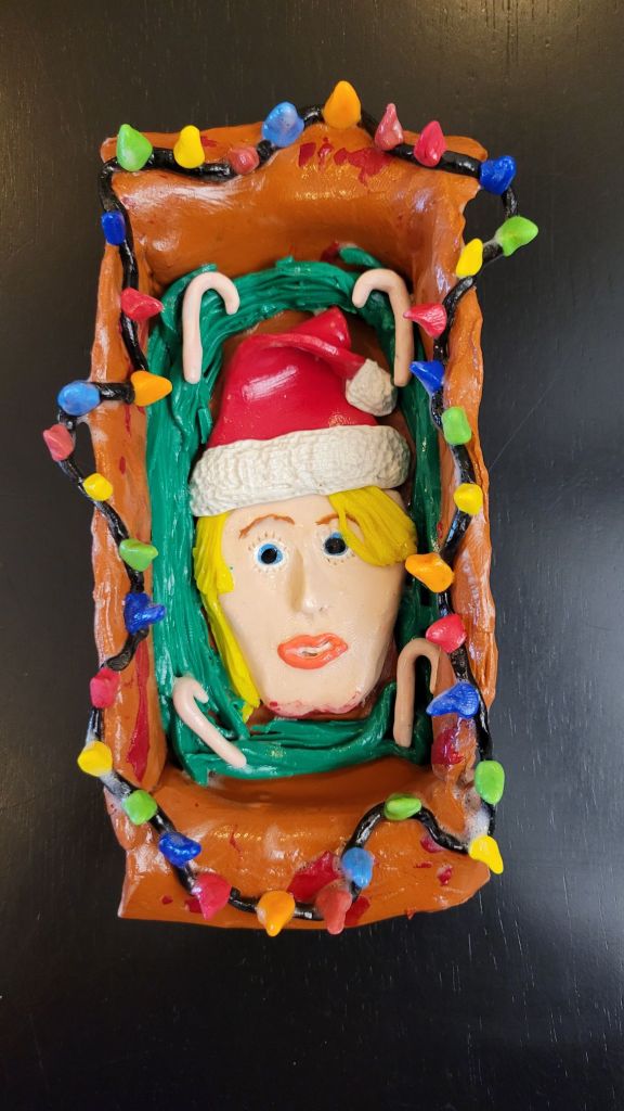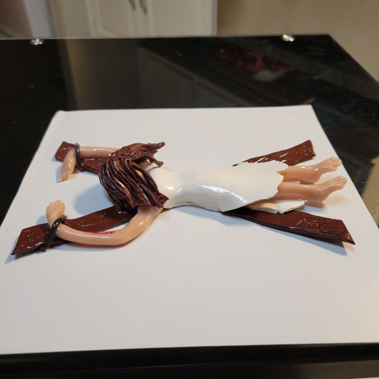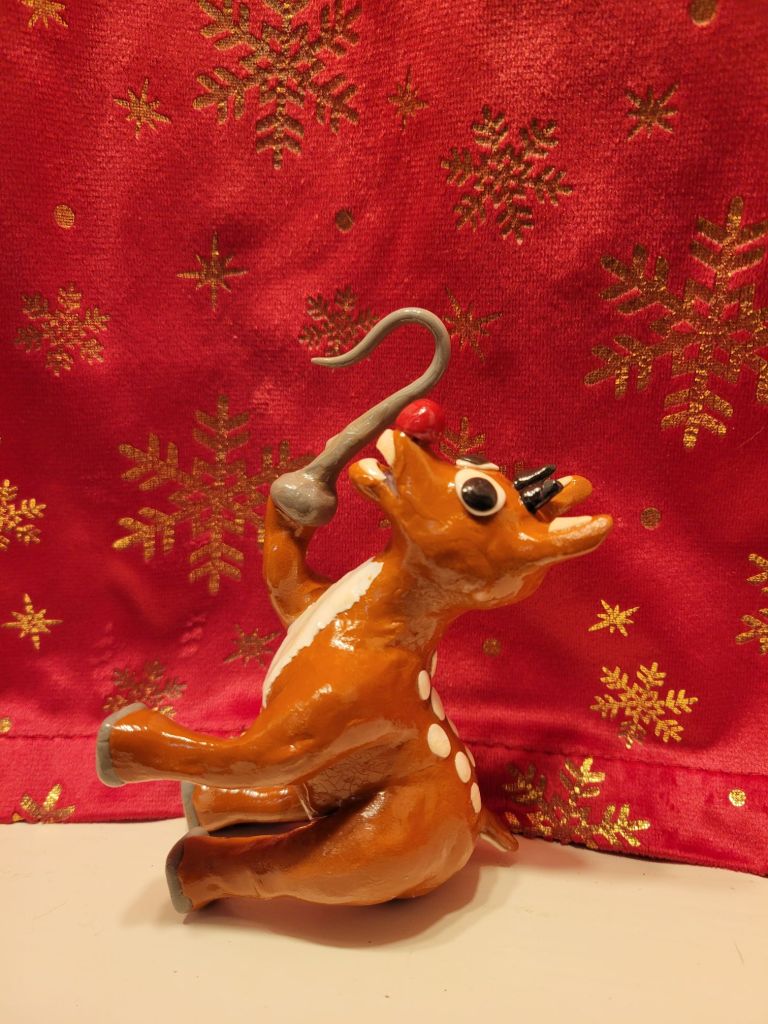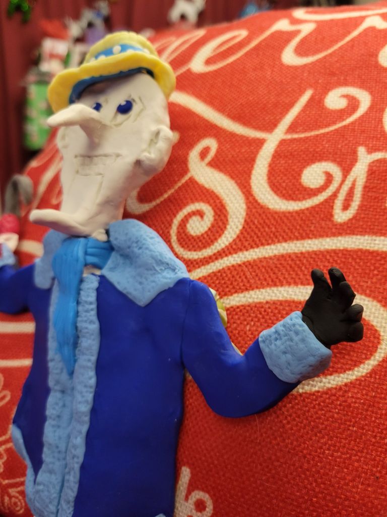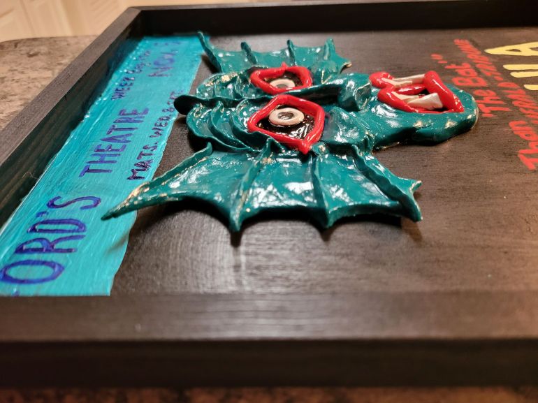 All sculptures were made by me with oven-bake polymer clay and sealed in a gloss or matte varnish. In some cases, I mounted them on my own acrylic-on-cardboard/unfinished wood paintings.