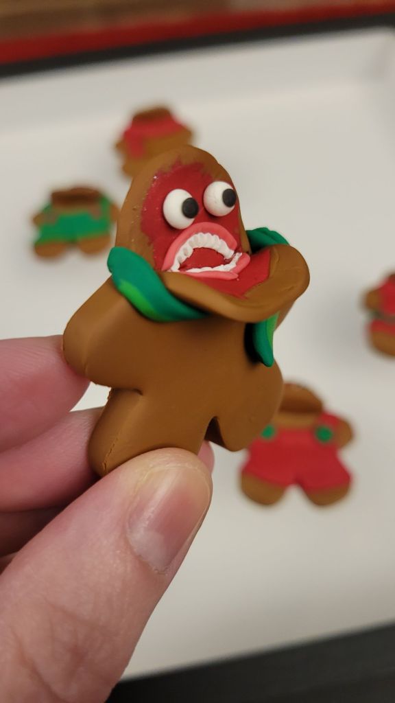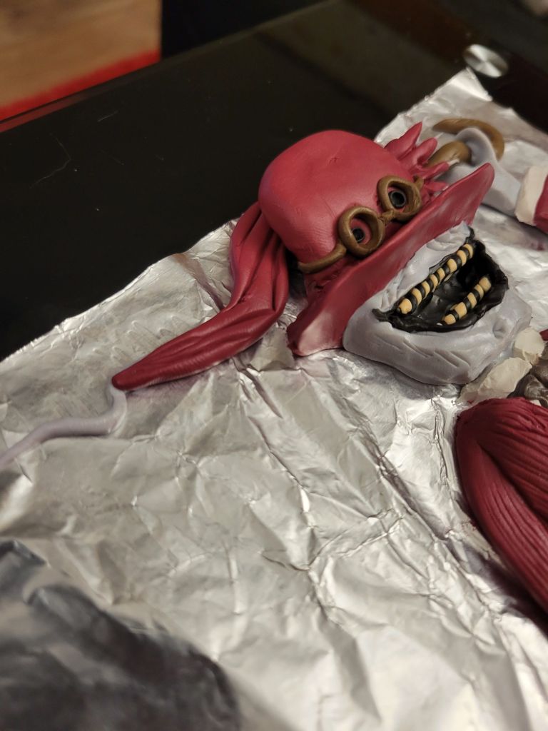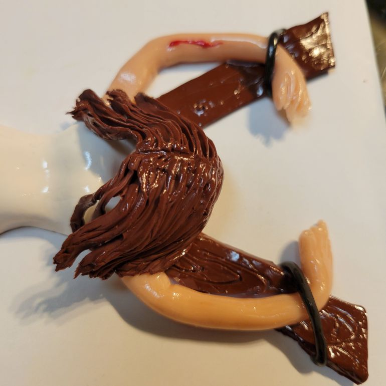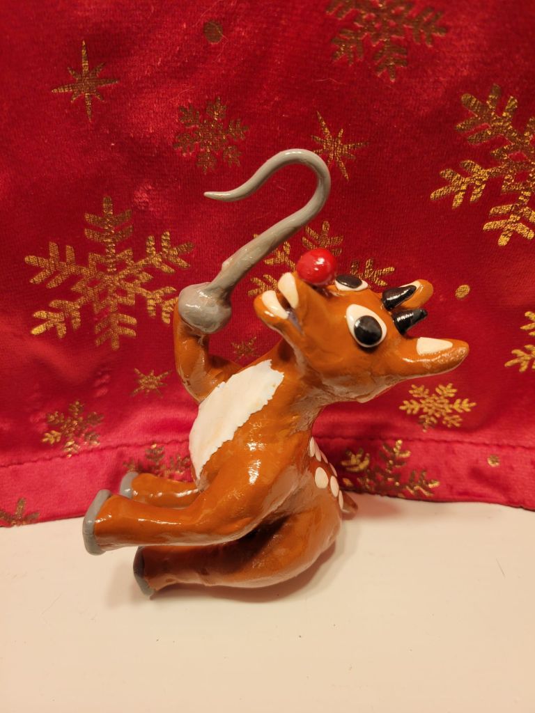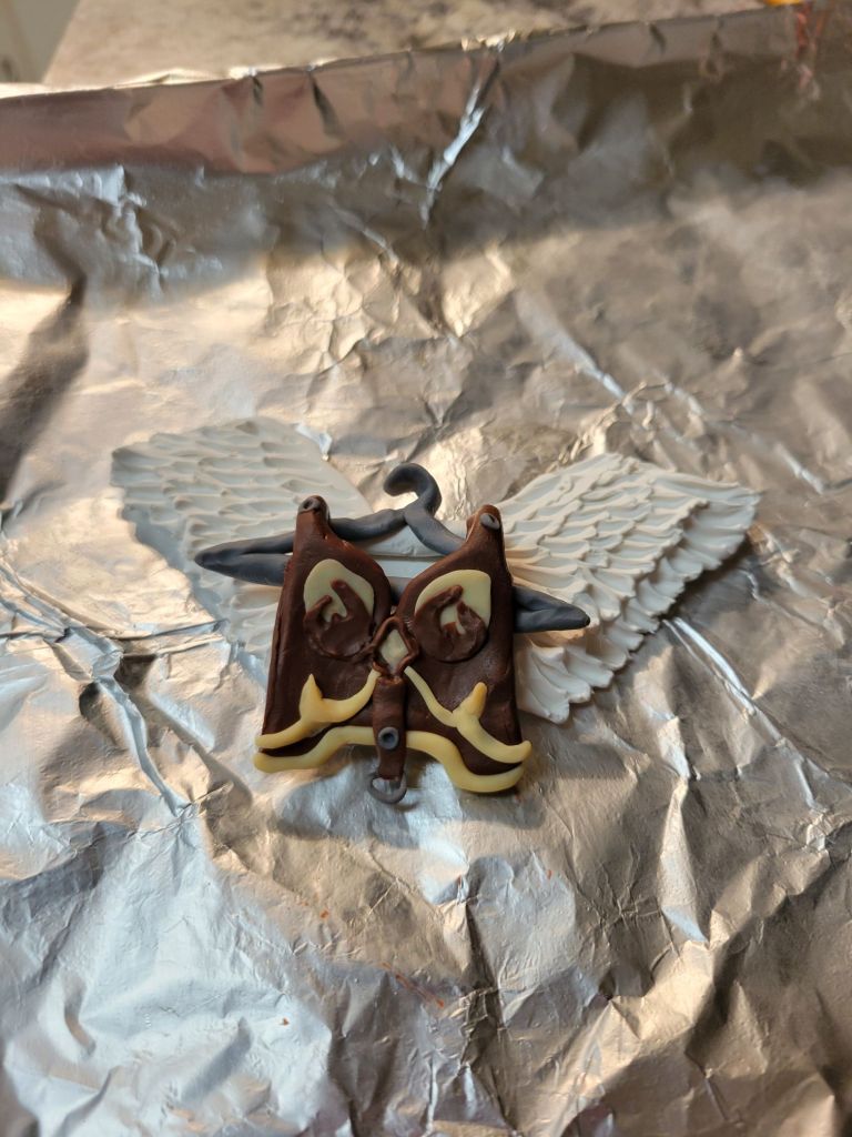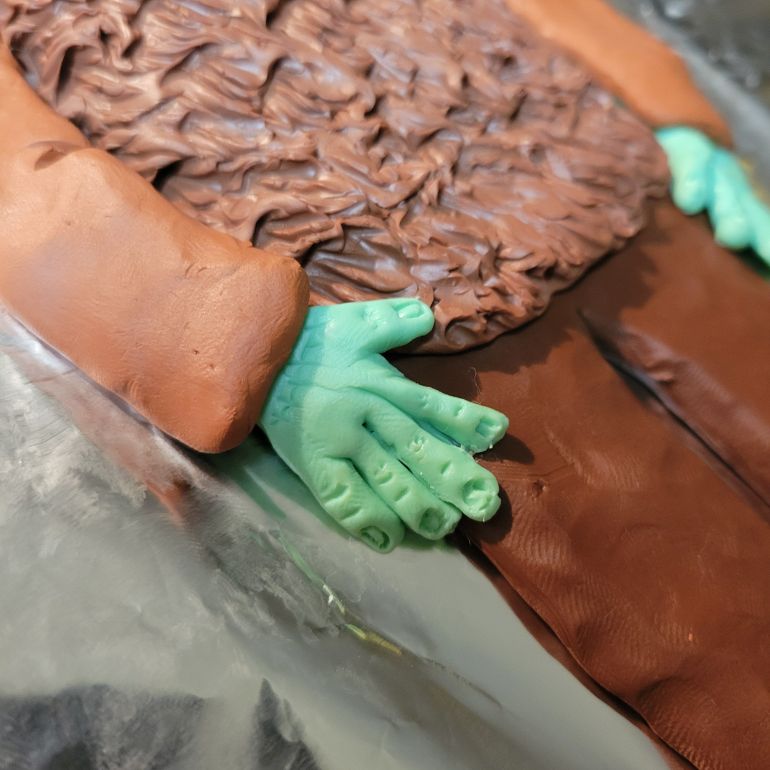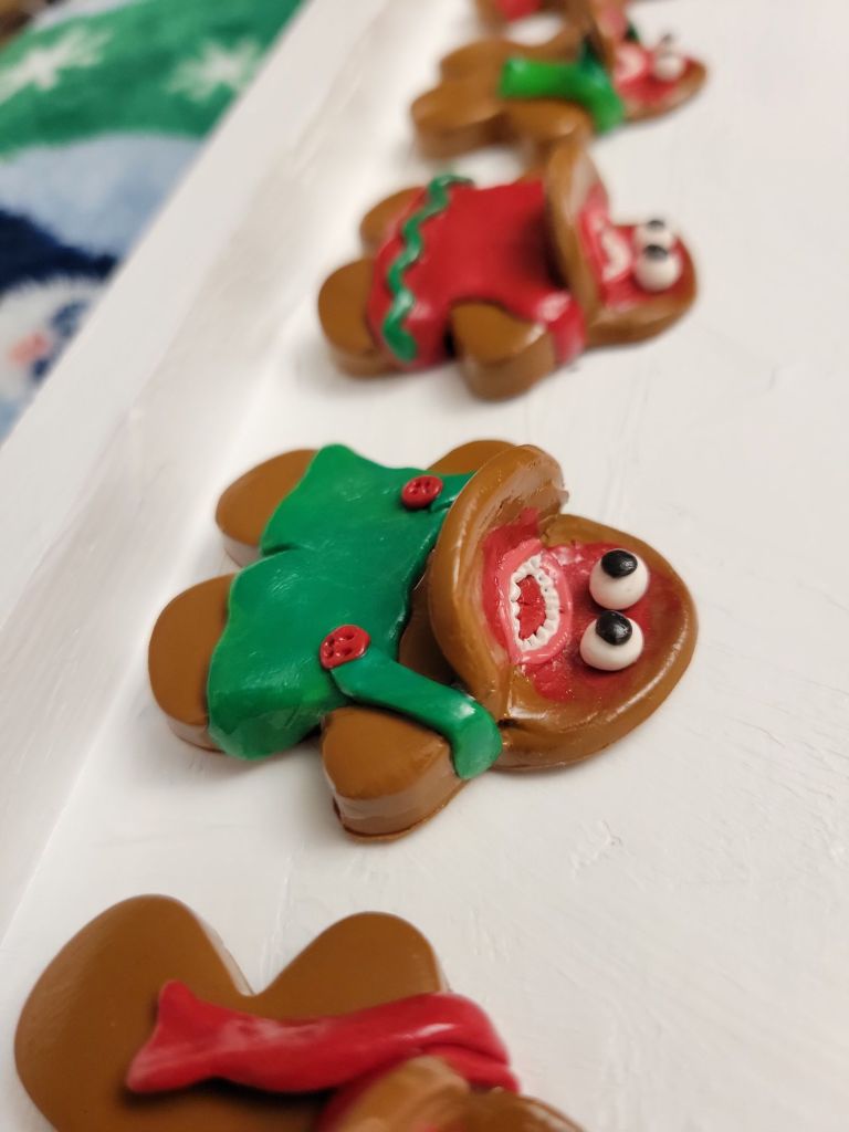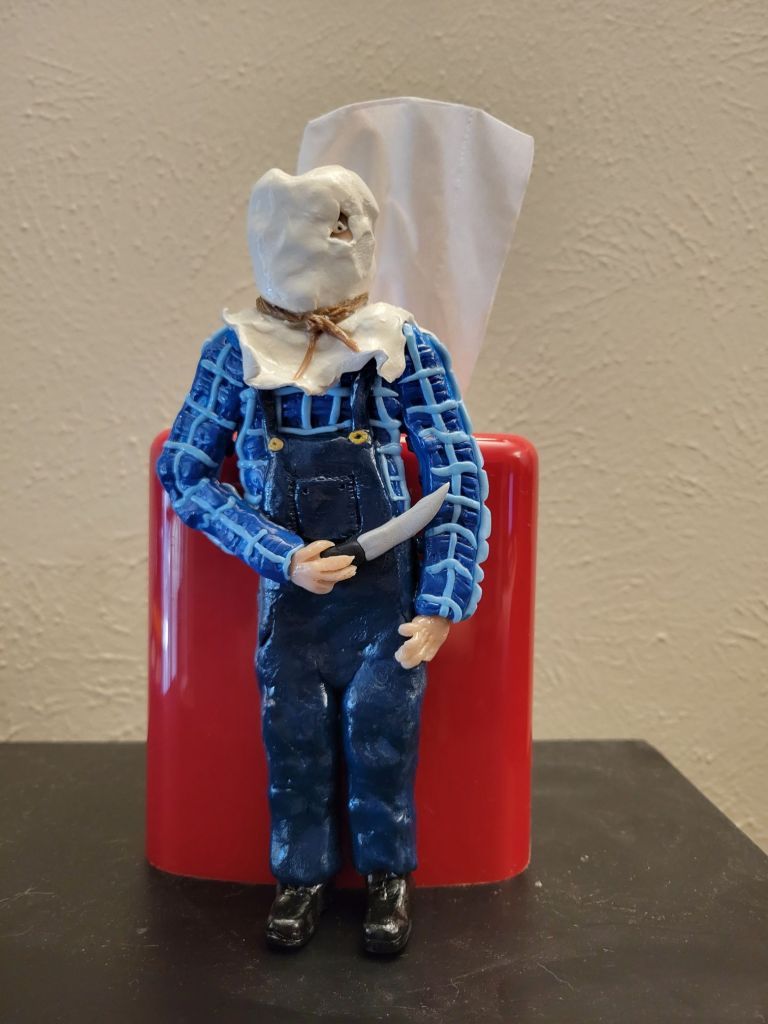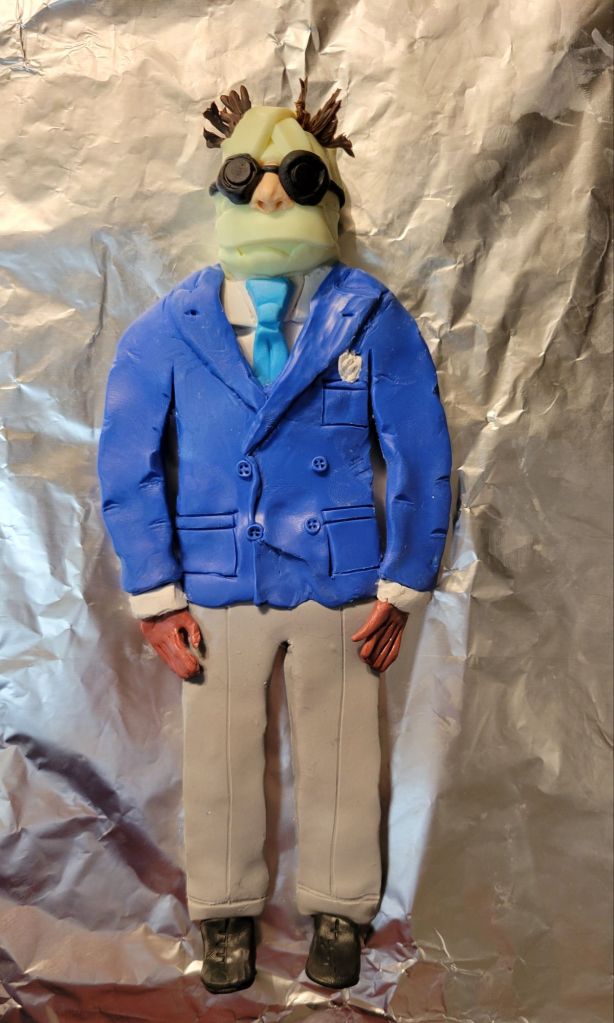 All sculptures were made by me with oven-bake polymer clay and sealed in a gloss or matte varnish. In some cases, I mounted them on my own acrylic-on-cardboard/unfinished wood paintings.