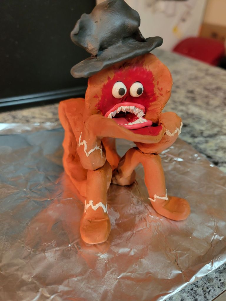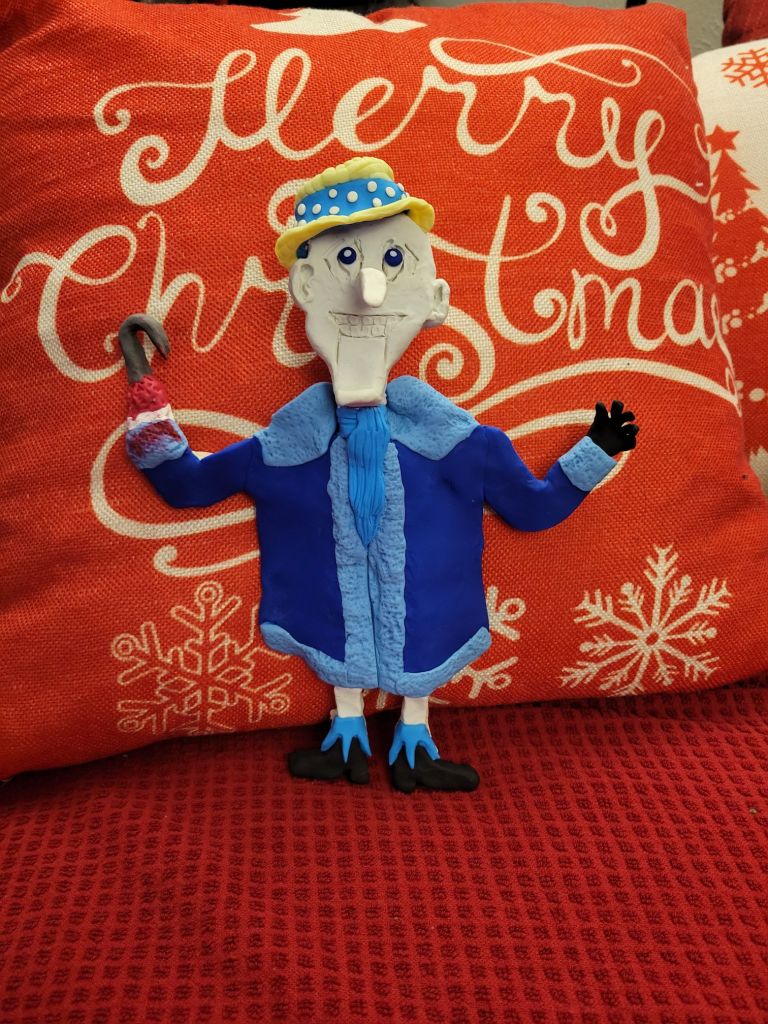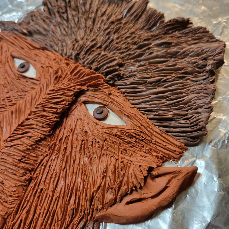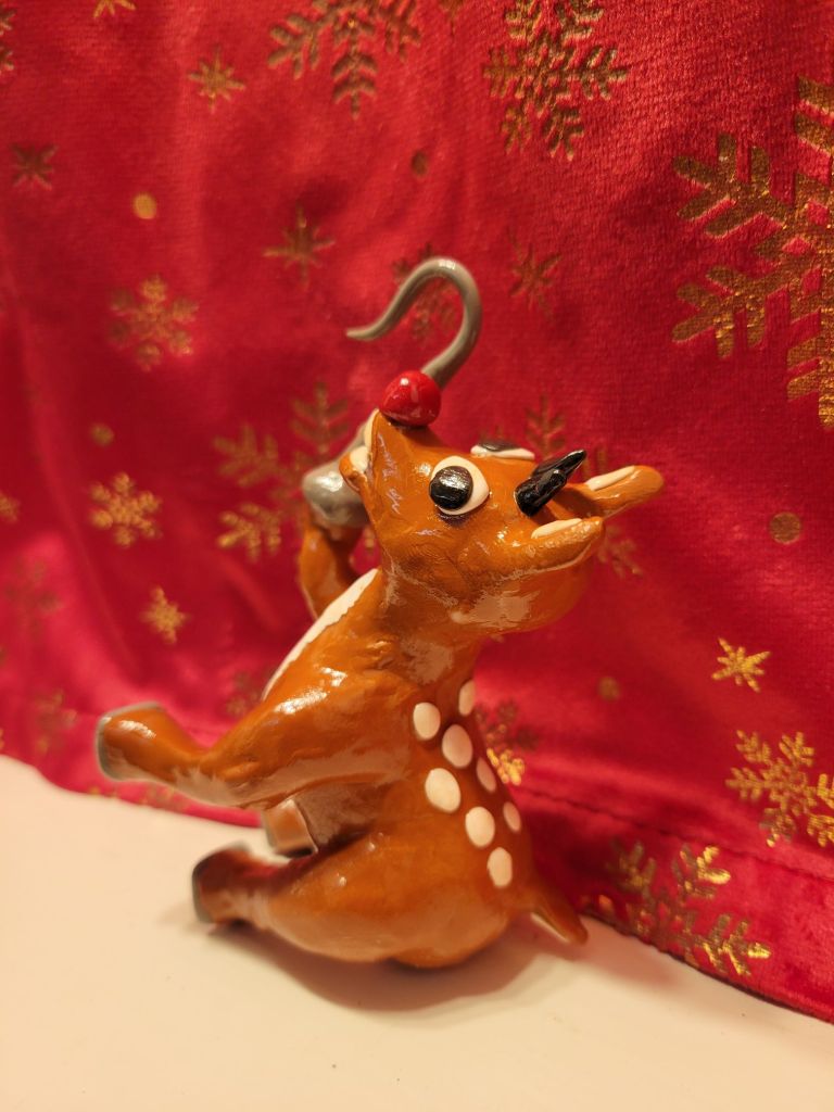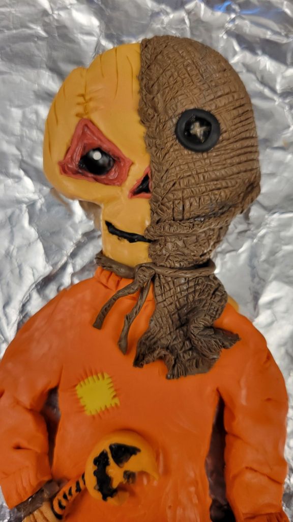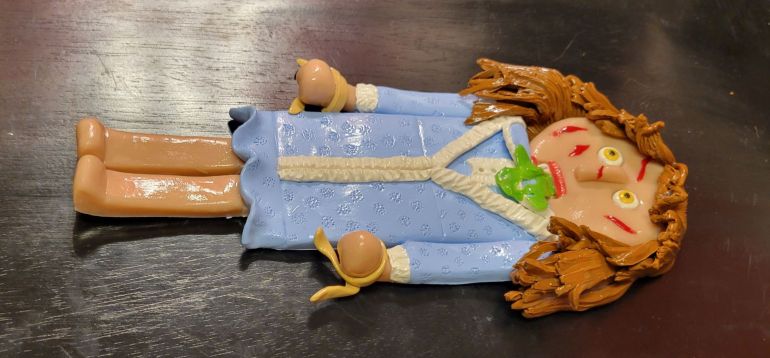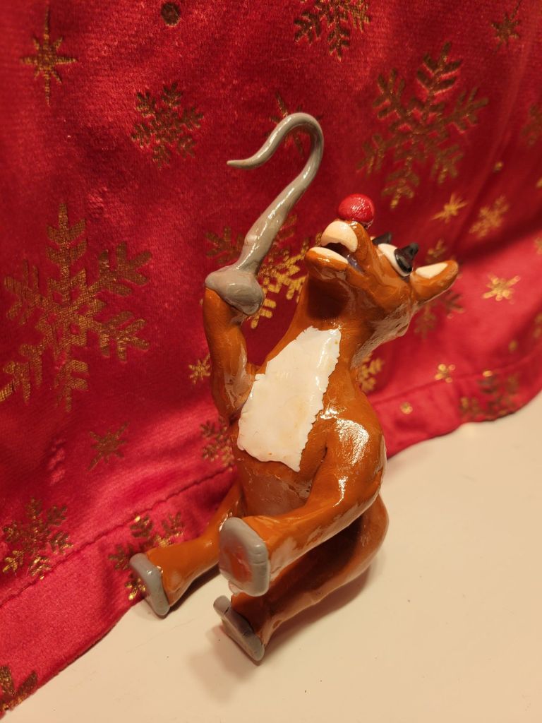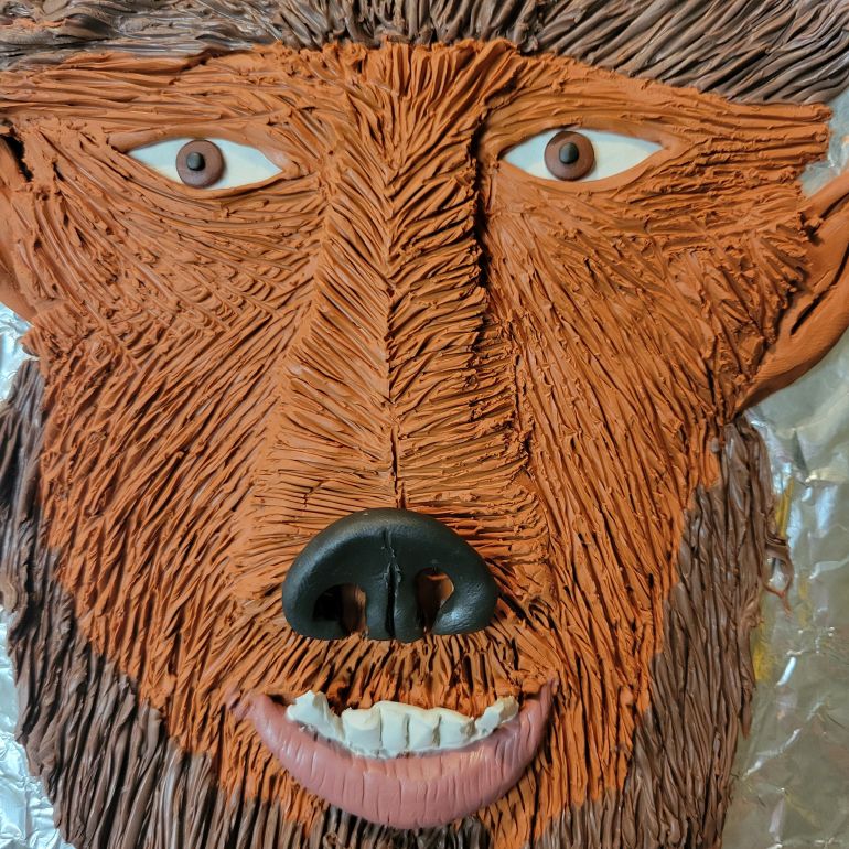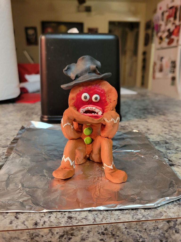 All sculptures were made by me with oven-bake polymer clay and sealed in a gloss or matte varnish. In some cases, I mounted them on my own acrylic-on-cardboard/unfinished wood paintings.