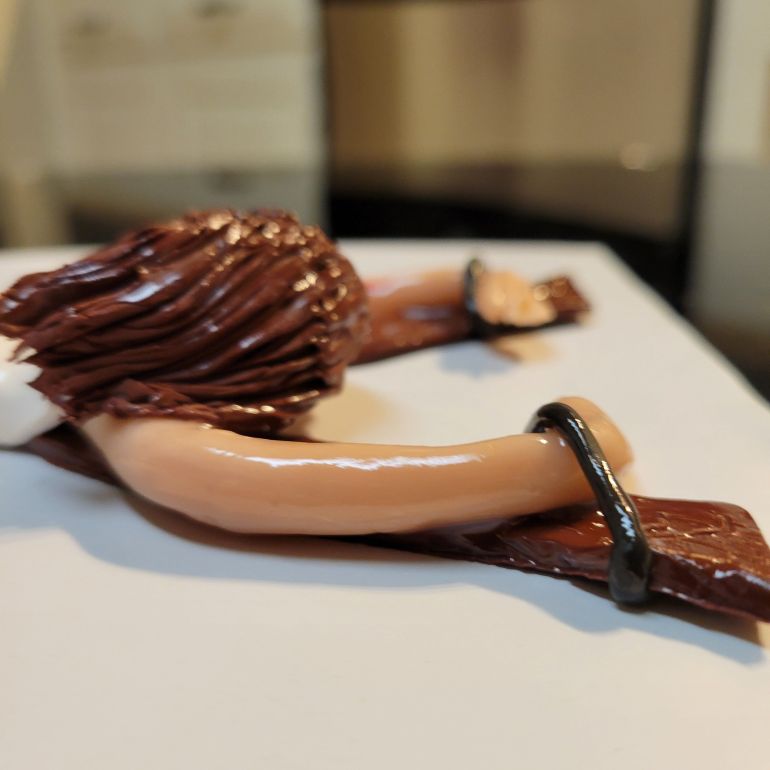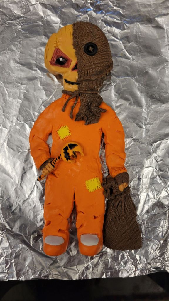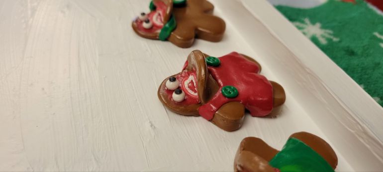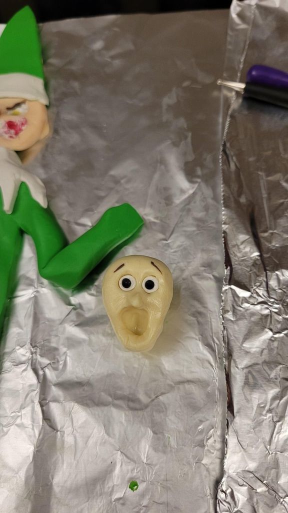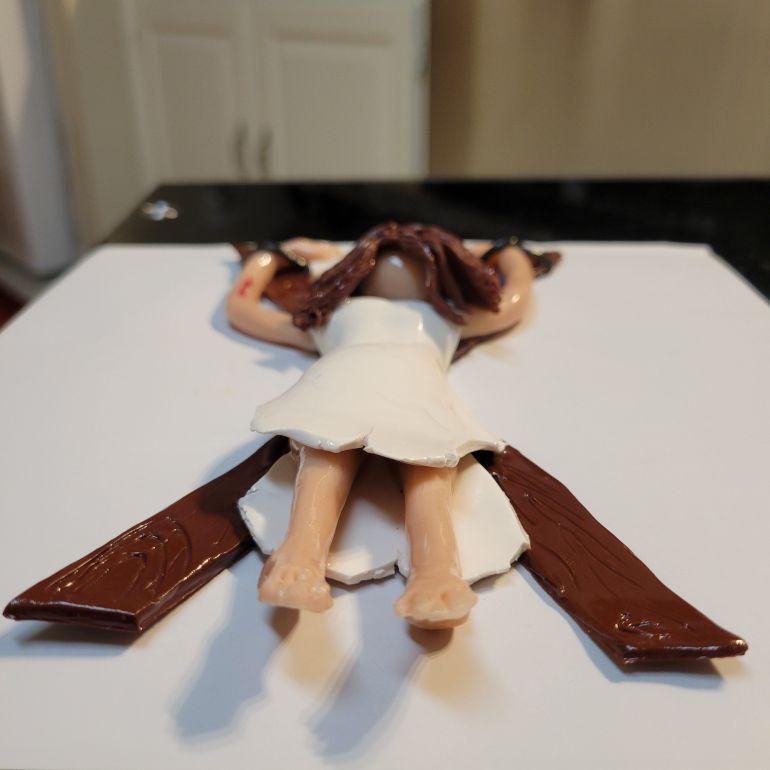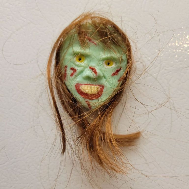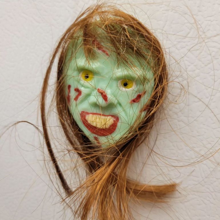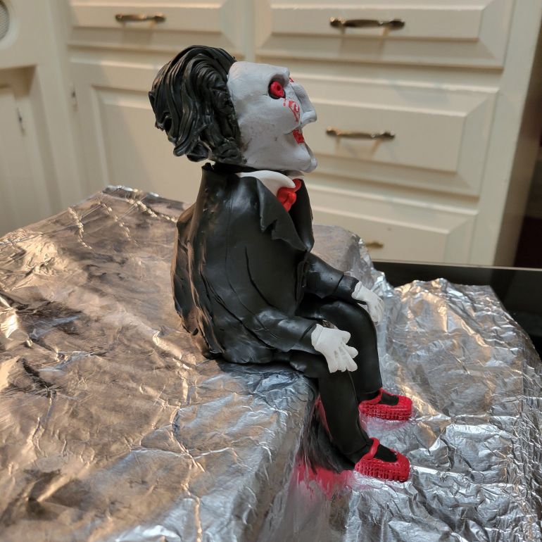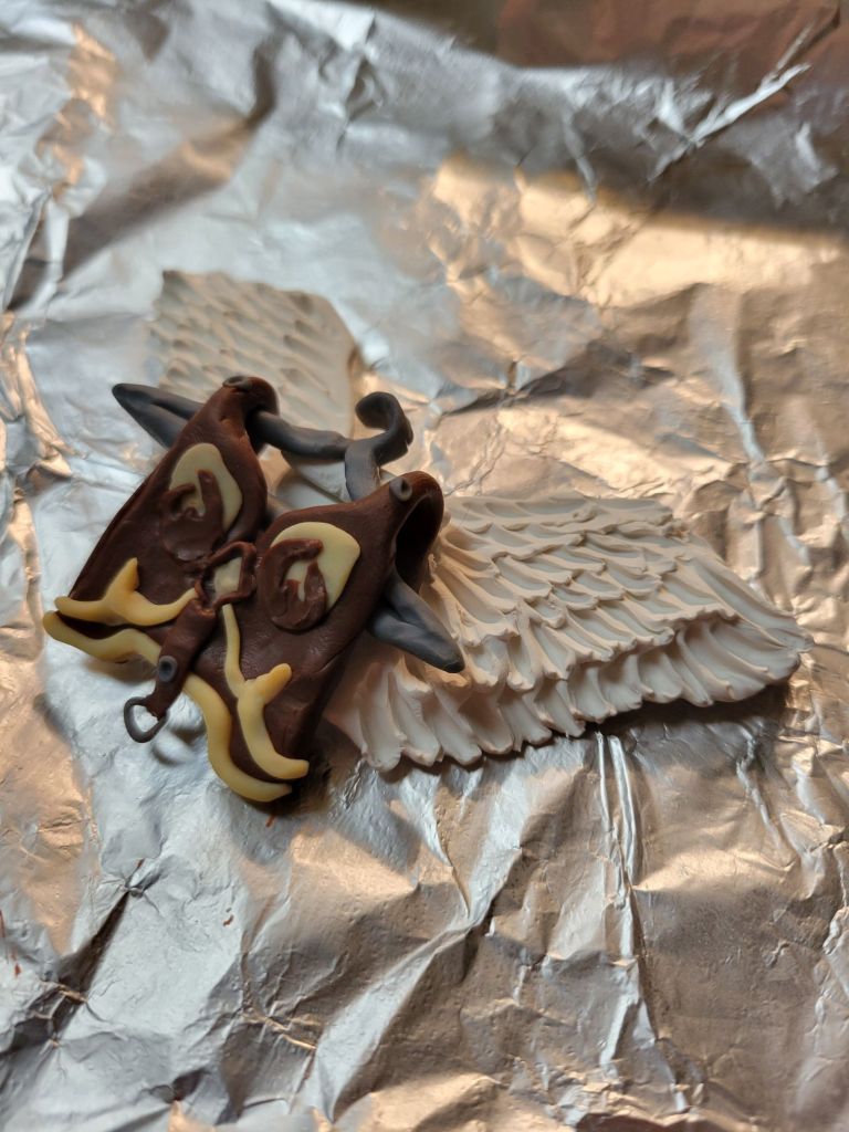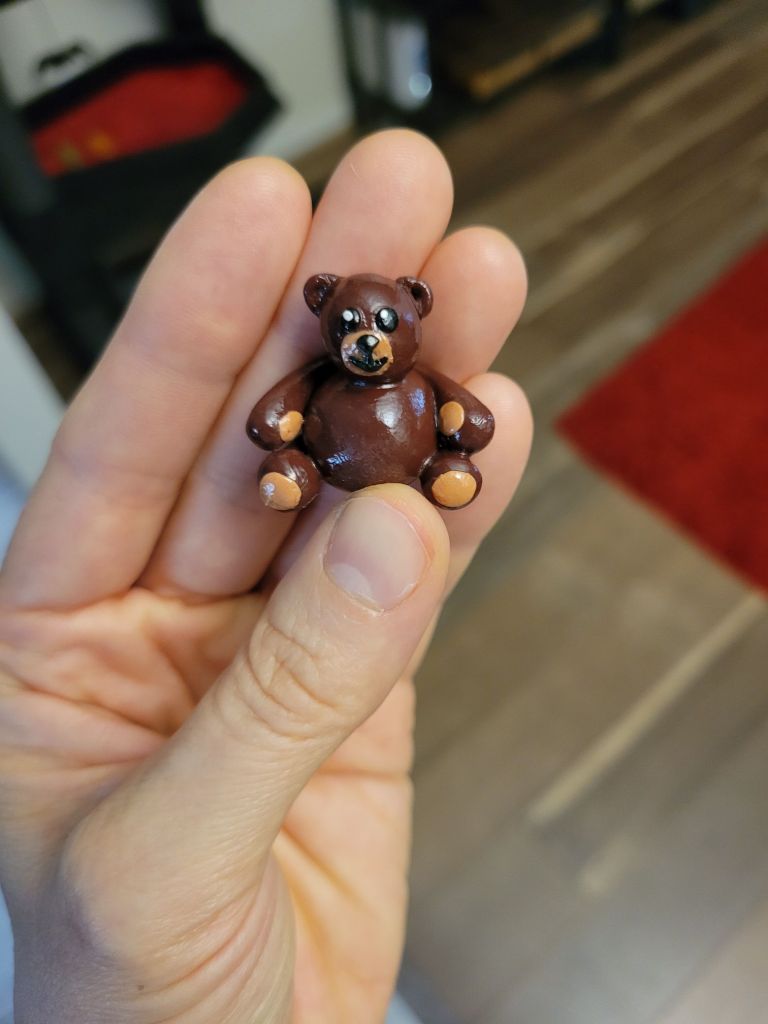 All sculptures were made by me with oven-bake polymer clay and sealed in a gloss or matte varnish. In some cases, I mounted them on my own acrylic-on-cardboard/unfinished wood paintings.