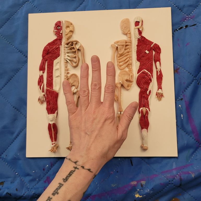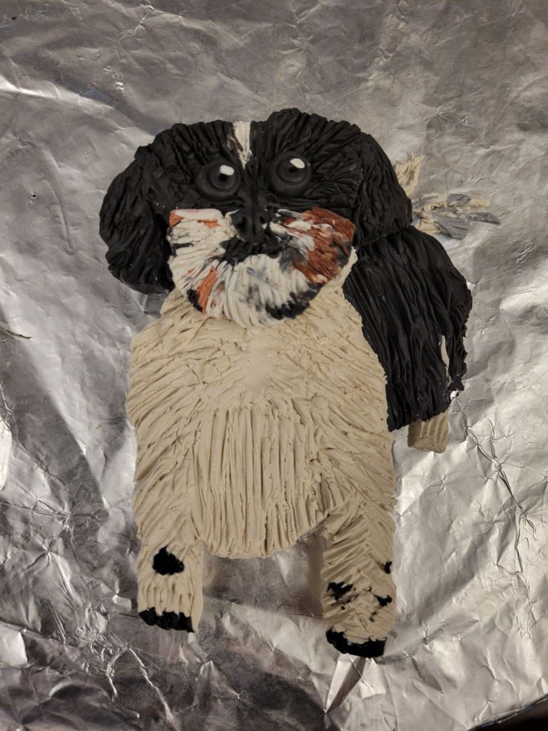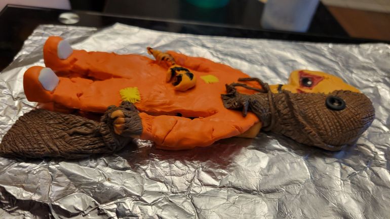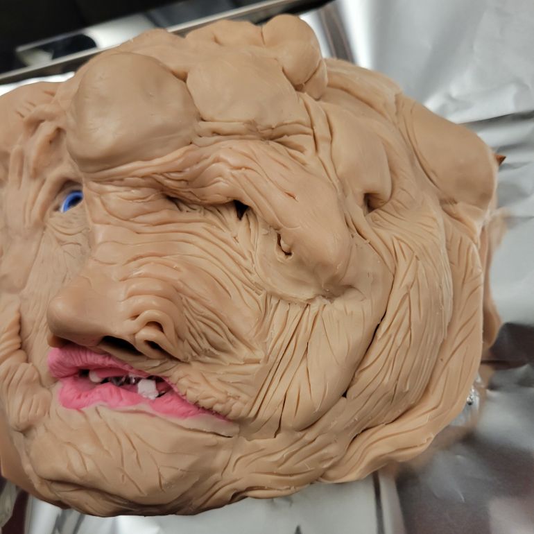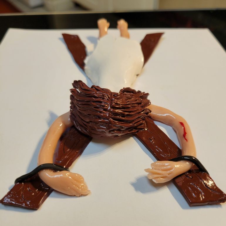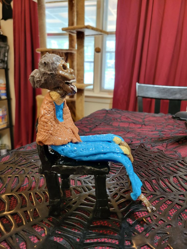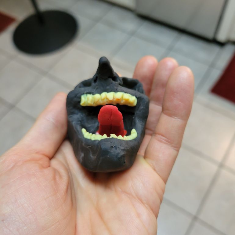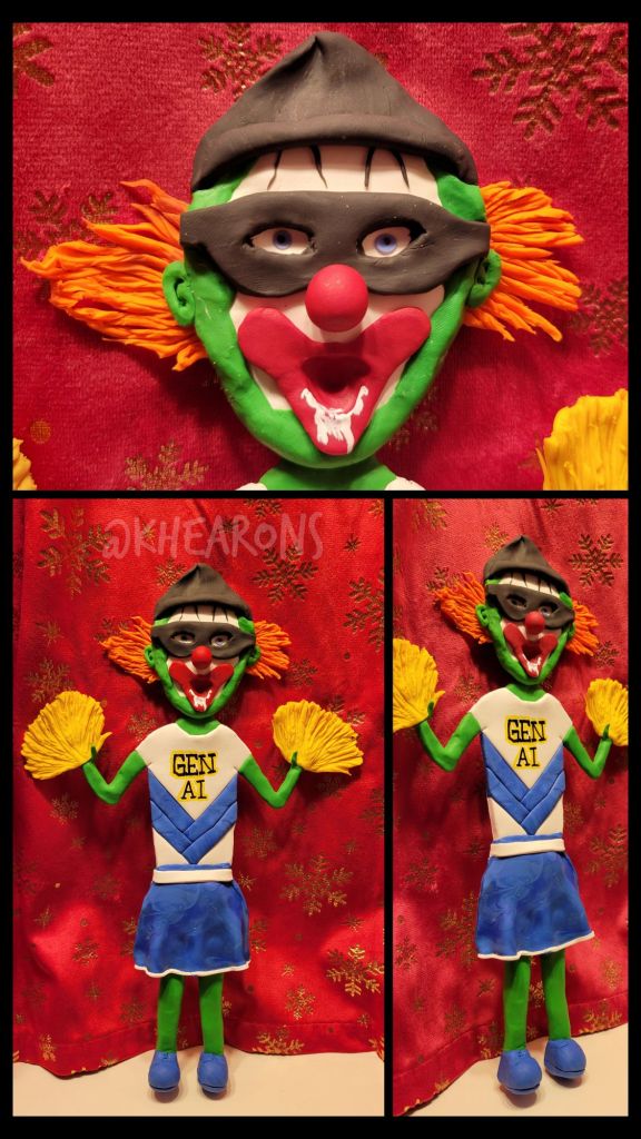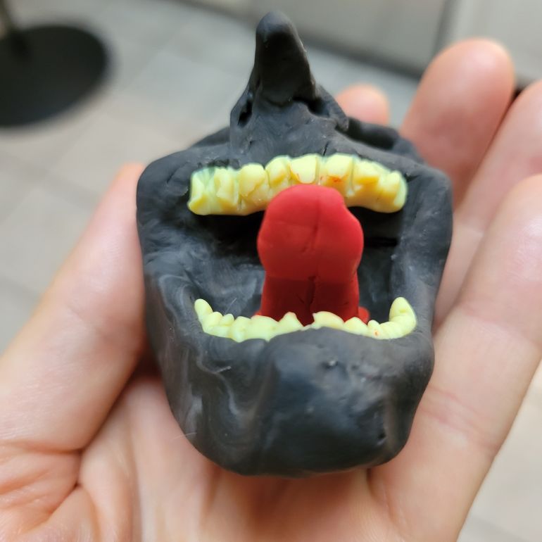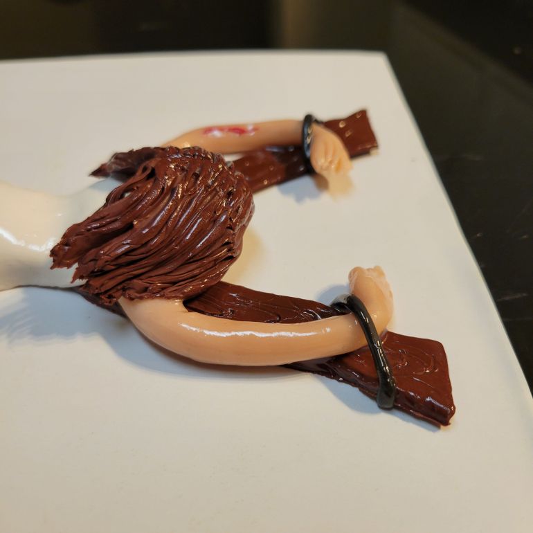 All sculptures were made by me with oven-bake polymer clay and sealed in a gloss or matte varnish. In some cases, I mounted them on my own acrylic-on-cardboard/unfinished wood paintings.