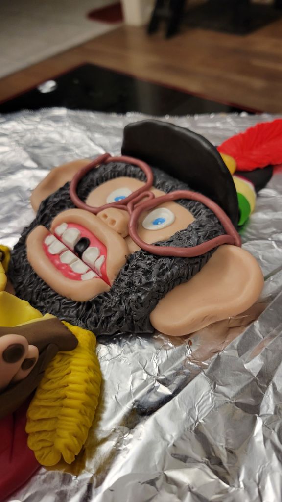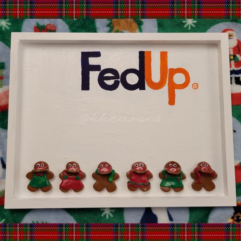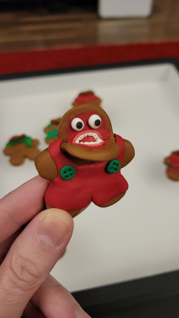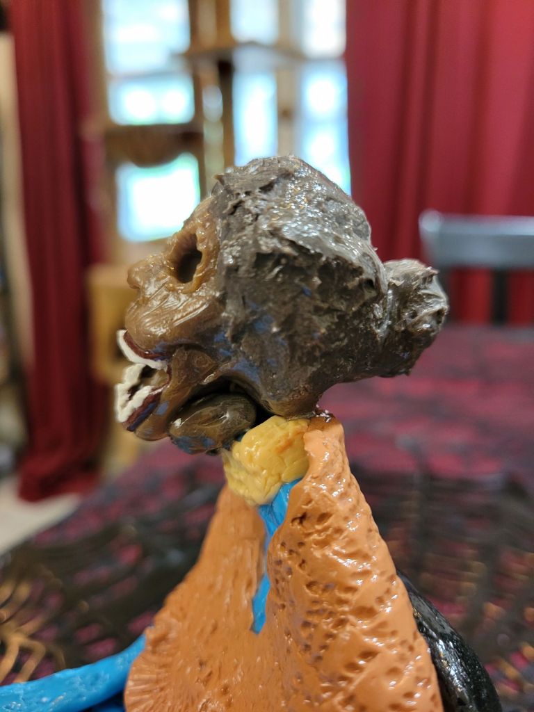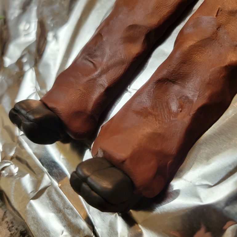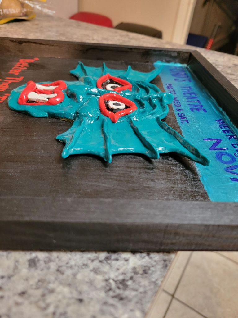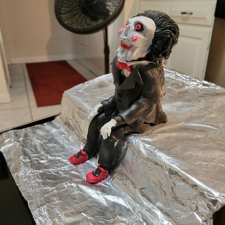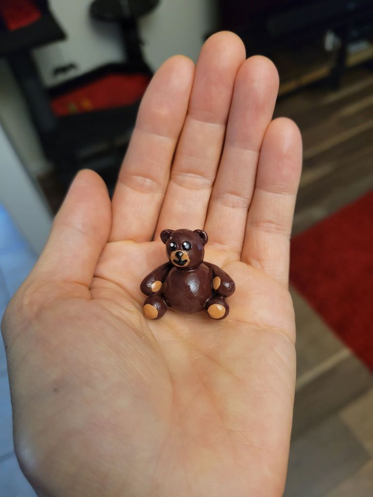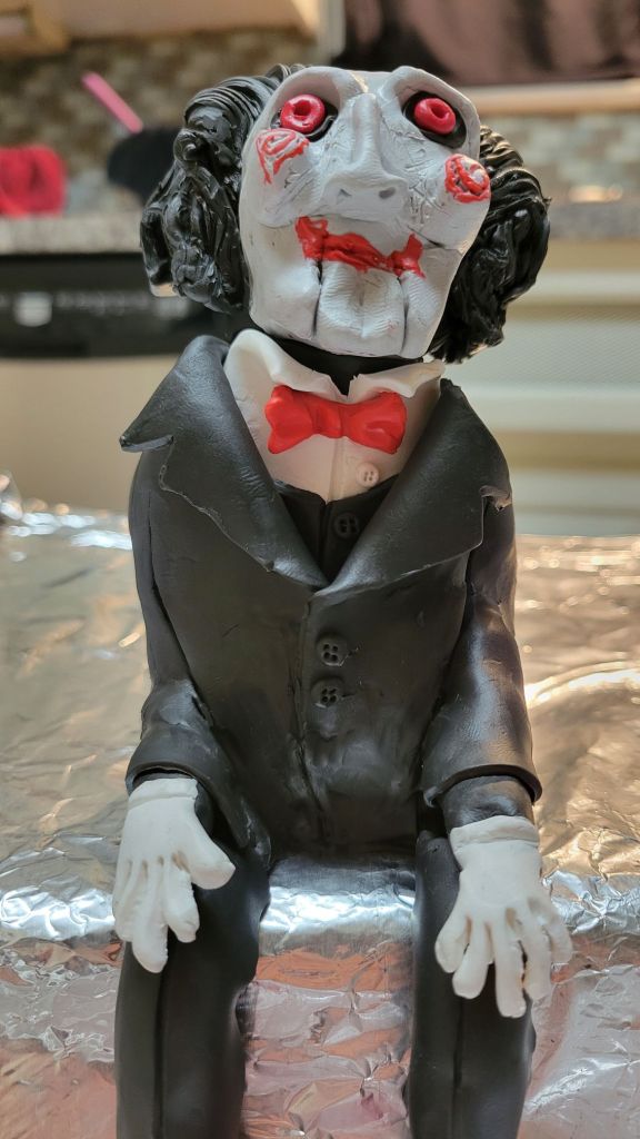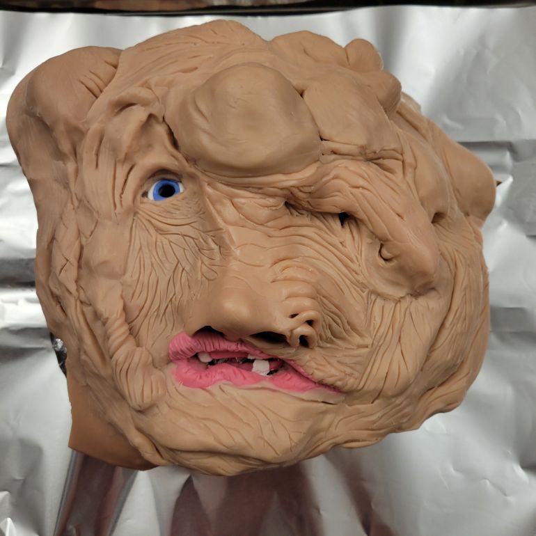 All sculptures were made by me with oven-bake polymer clay and sealed in a gloss or matte varnish. In some cases, I mounted them on my own acrylic-on-cardboard/unfinished wood paintings.