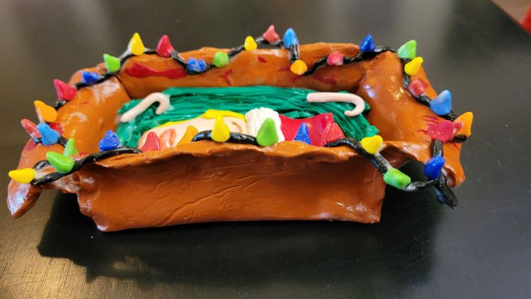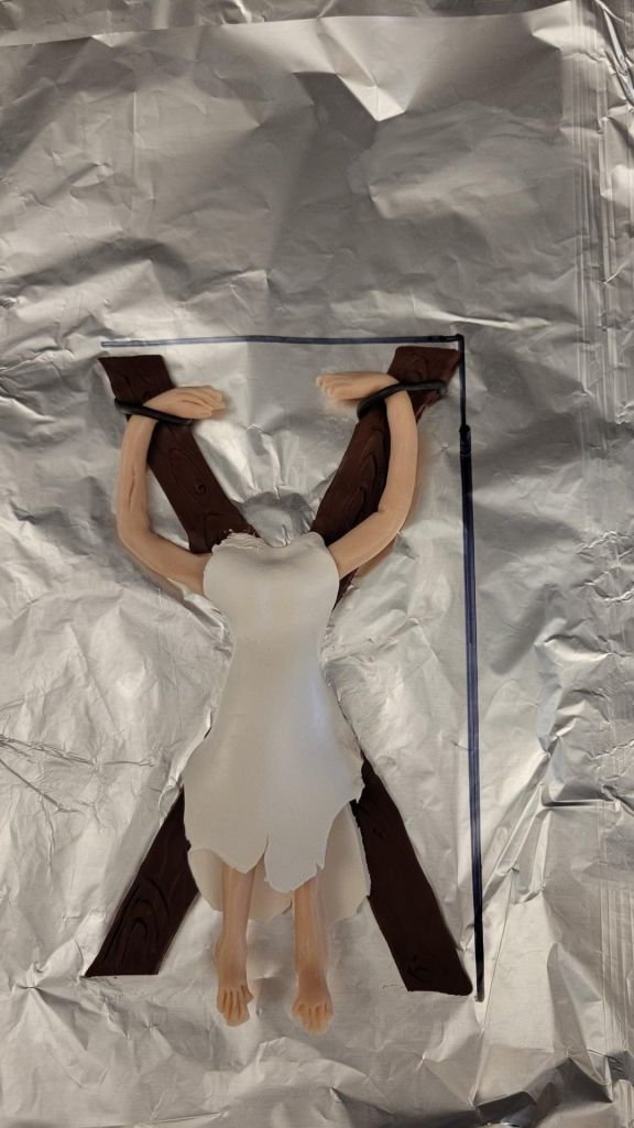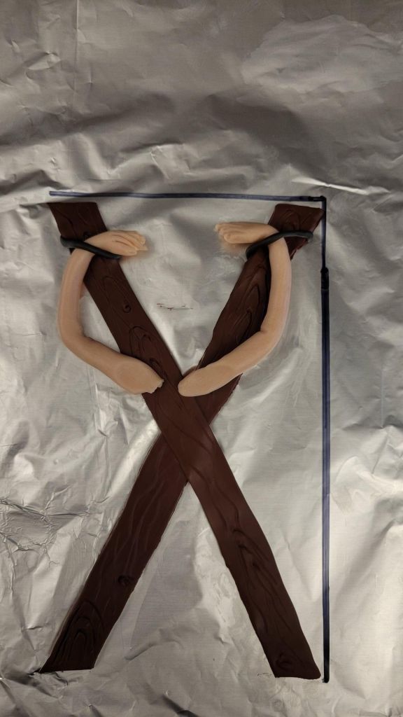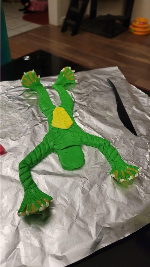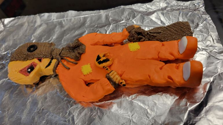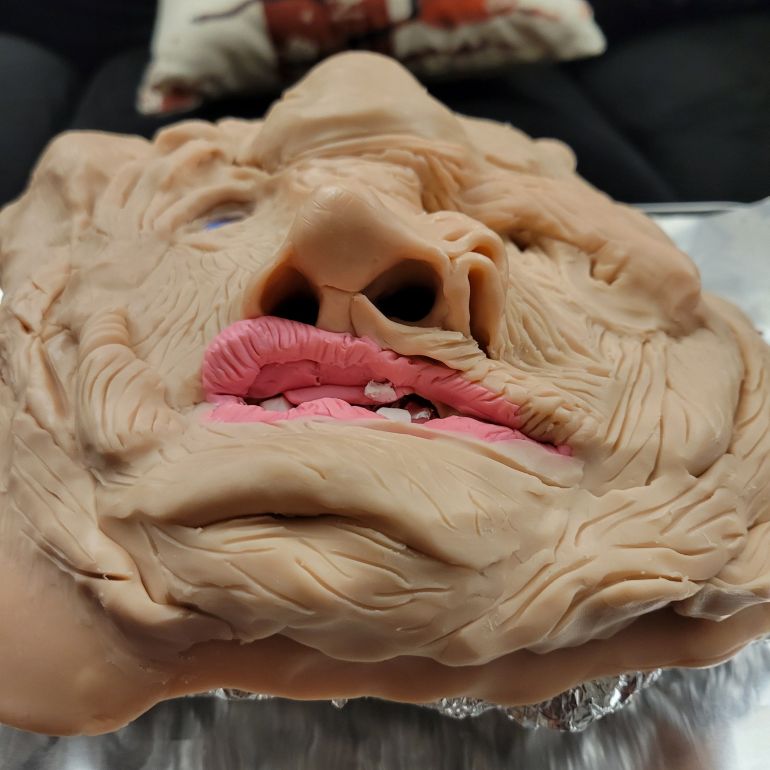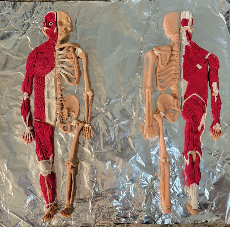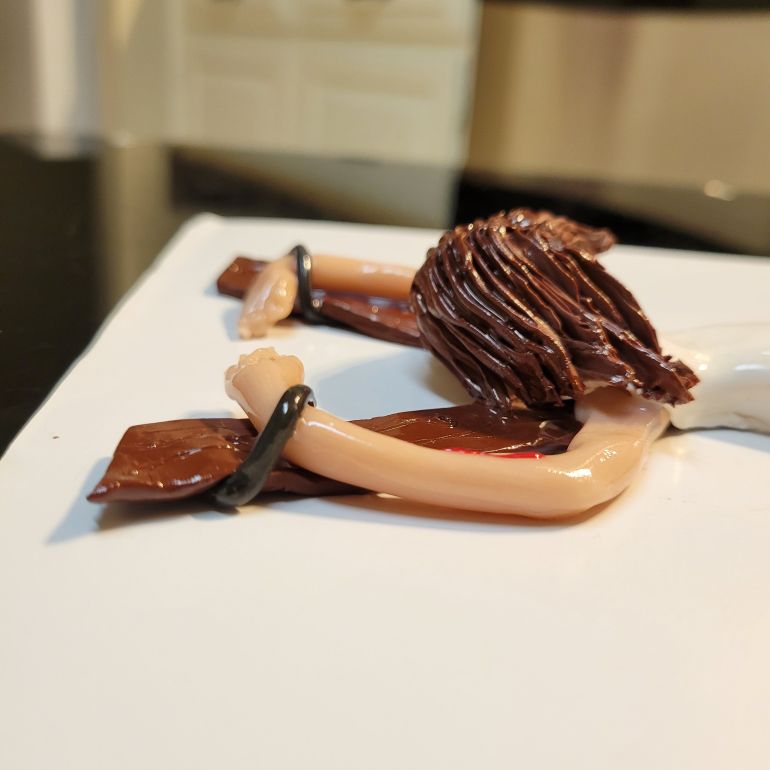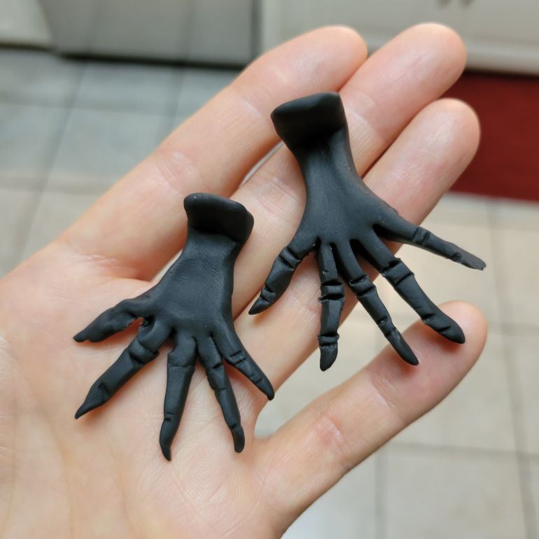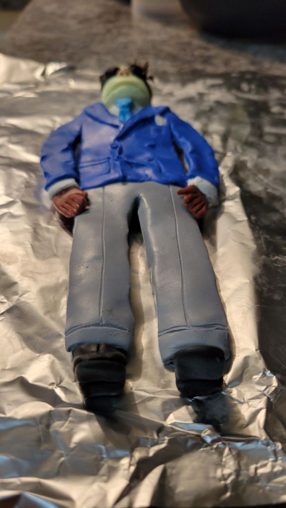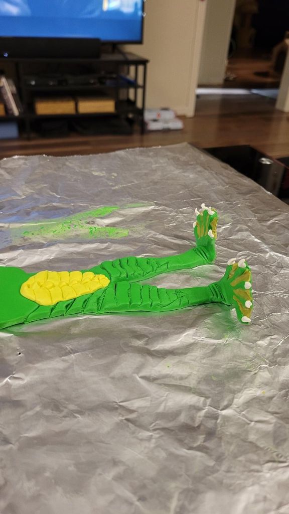 All sculptures were made by me with oven-bake polymer clay and sealed in a gloss or matte varnish. In some cases, I mounted them on my own acrylic-on-cardboard/unfinished wood paintings.