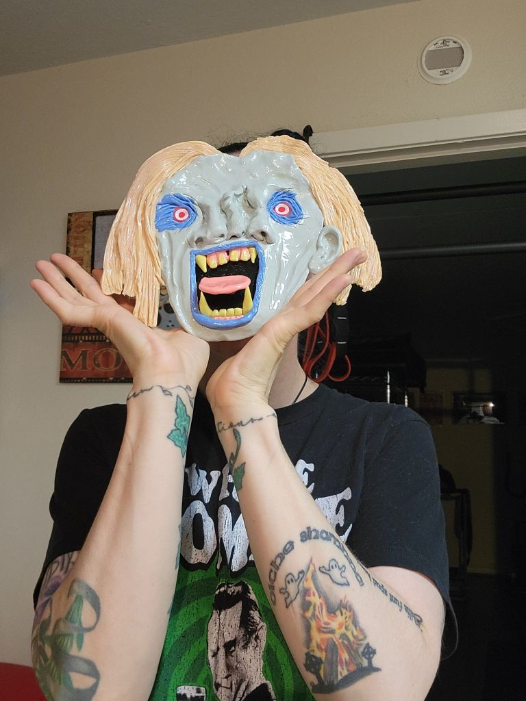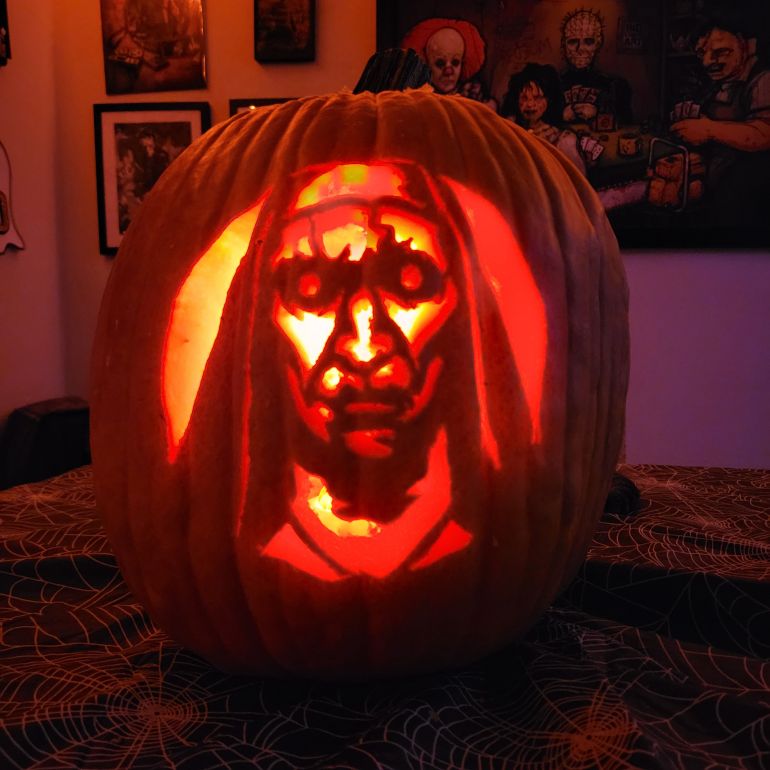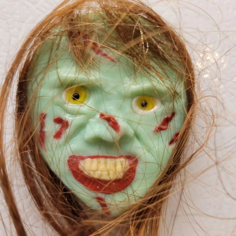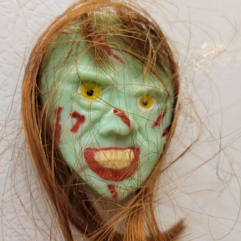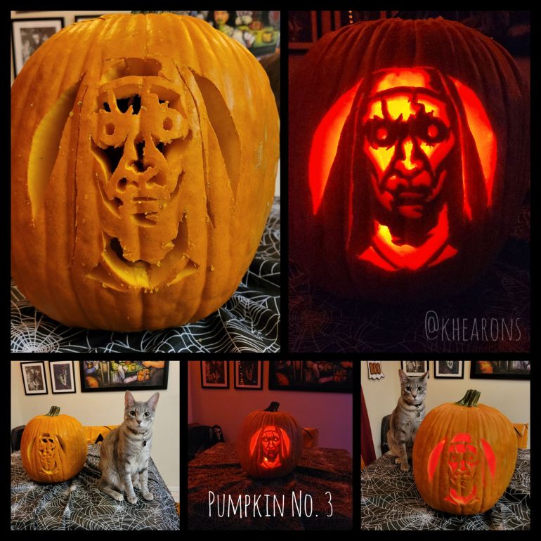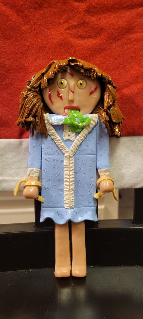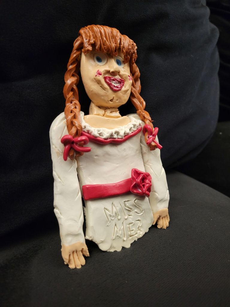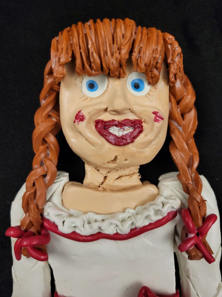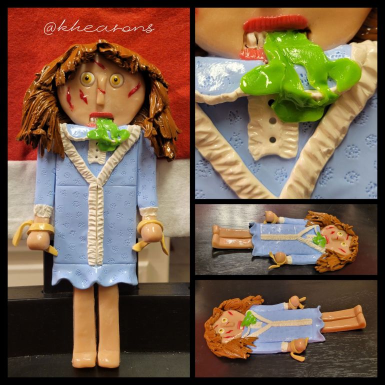 From left, down are: Sienna’s costume (“Terrifier 2,” 2022), The Headless Horseman (“The Legend of Sleepy Hallow”), Regan/Pazzuzu (“The Exorcist,” 1973), Chucky (“Child’s Play,” 1988), Victoria (“Terrifier,” 2016) and Annabelle (“The Conjuring” Universe)