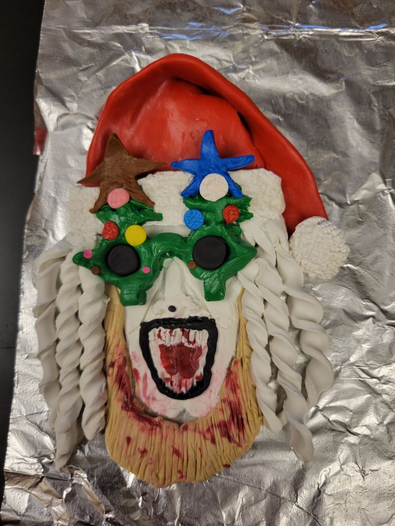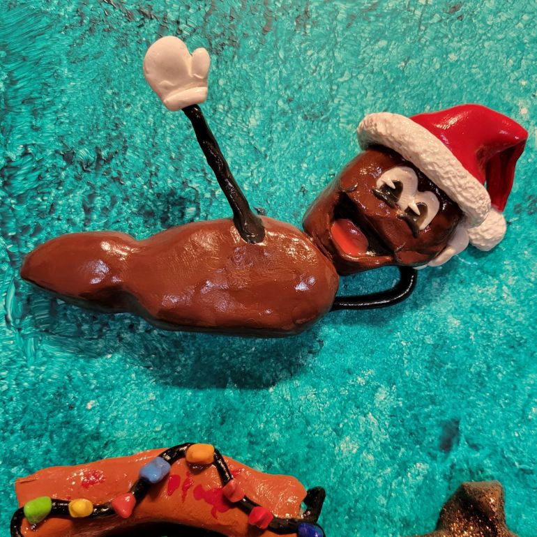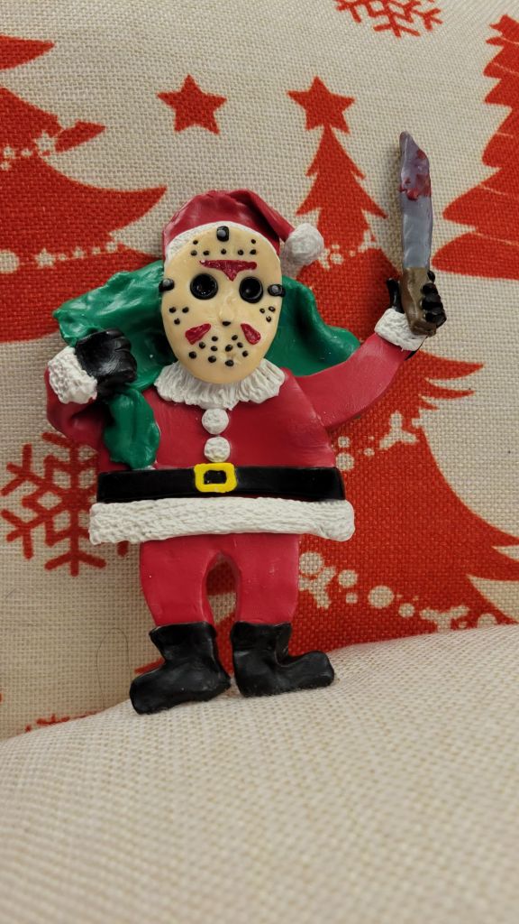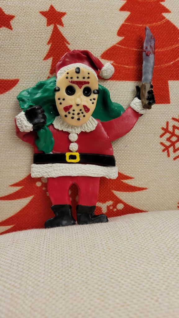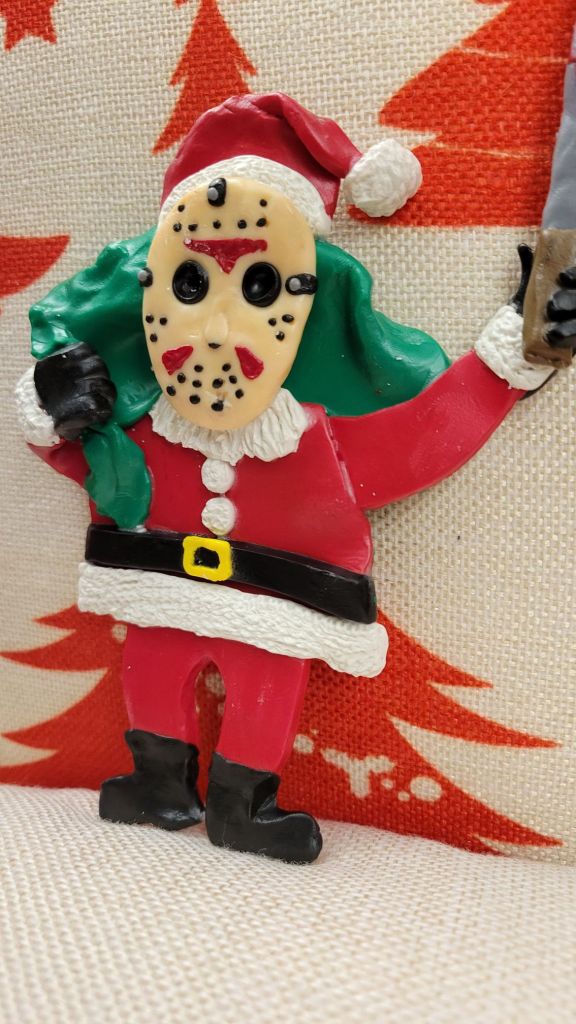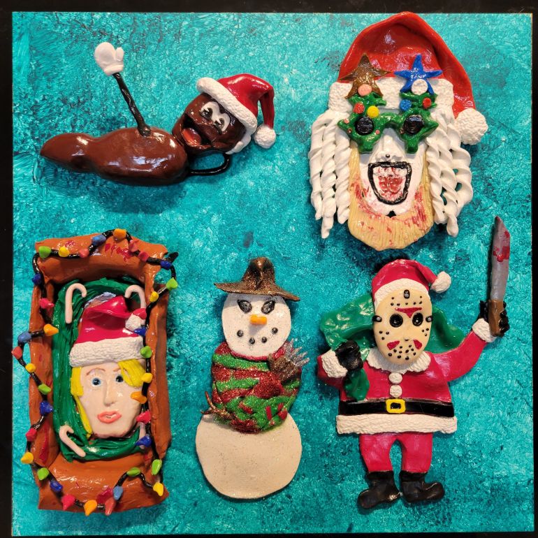 Top row: Mr. Hankey (“South Park”) and Art the Clown (“Terrifier 3,” 2024). Bottom row: “The Se7enth Day of Christmas,” “Freddy the Snowman” and “Voorhees Claus.”